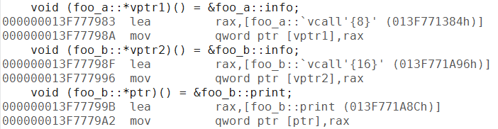 printf("pointer to &foo_a::info = 0x%llxH\n", vptr1);